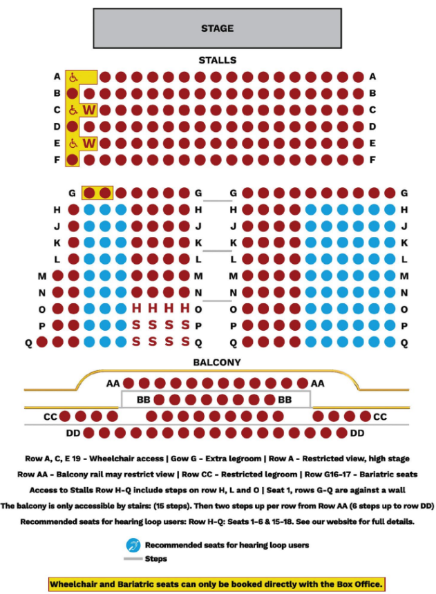 These limited seats are not available to book online and can currently only be requested directly through our box office to ensure that they are available to those who need them.