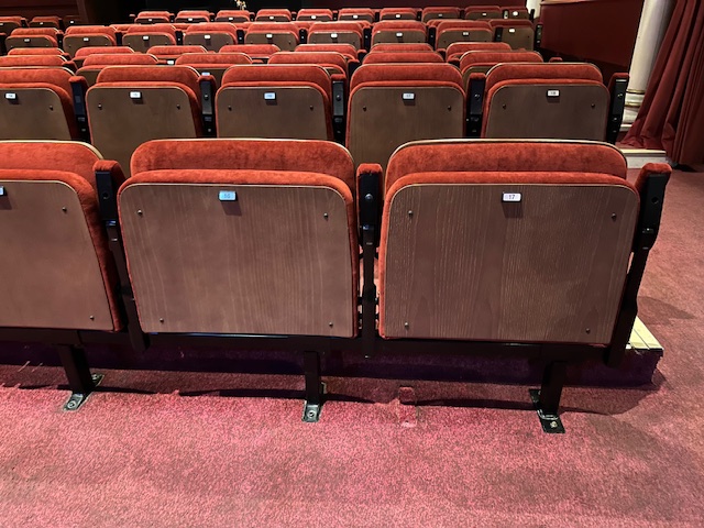 For our main auditorium we have two bariatric seats available, seats G16 & G17. The width between the armrests of the wider seats is 600mm (a standard seat is 450mm).