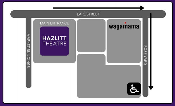 The Hazlitt Theatre benefits from a number of disabled bays situated outside the venue. There is lift access (located in Rose Yard) into the theatre and adapted toilet facilities on floor one. All audiences are advised to allow plenty of time to get to the theatre. Please ensure that you have given us consent to send email confirmations so you will receive our pre and post show communications. If you do not you may miss important information about your visit. Otherwise, please be aware that unless otherwise specified doors and box office will open one hour before for our main house or 30 mins before shows in the Exchange Studio.